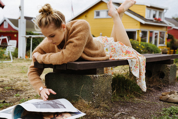 The way you dress is totally “hytta” style. You mix your summer dress with chunky wool socks and knitted sweaters.Footwear is slip-on shoes or rainboots.To lay down in the gras and just listen to the birds.To walk around by the shore and play ticktacktoe or "fiskesprett" (throwing a rock in the water and see how many times the rock bounce).The whole point of the cabin trips, called "hyttetur" in Norwegian, is to get closer to nature and spend time with your favorite people to create summer memories.
