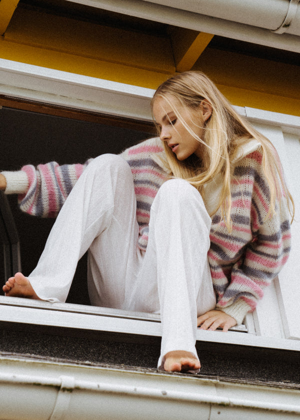 Our Spring 24 collection is inspired by these “hytta” moments. Everything from the color palette to the lace from your grandma ́s handmade curtains, the seersucker pepita patterns from the tablecloths, the fisherman’s details on the outerwear, big chunky knitted sweaters and the flowery summer dresses. Be by the Shore to ease you mind.